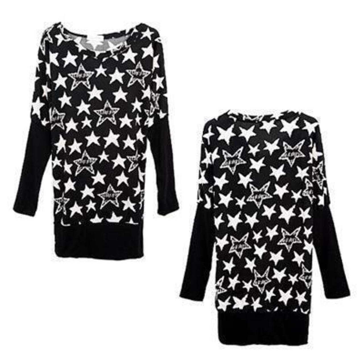 大きいサイズ レディース 星柄★ロングリブ ドルマン チュニック