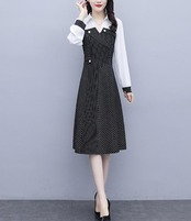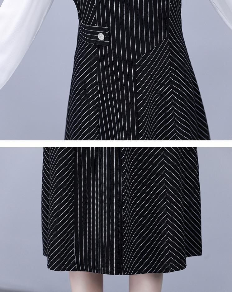 大きいサイズ レディース 秋冬 重ね着風 ワンピース ストライプ 長袖