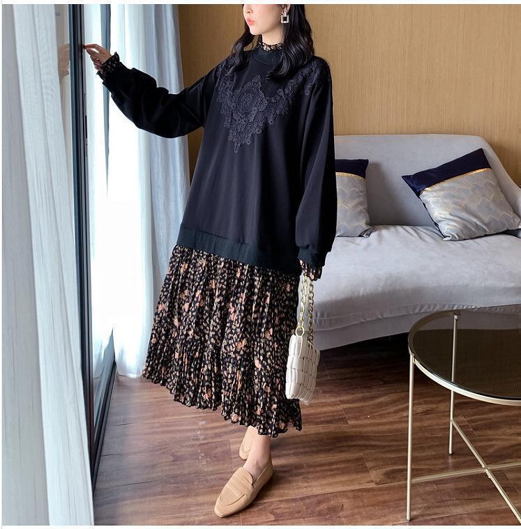 大きいサイズ レディース 秋冬 花柄 ワンピース ドッキング