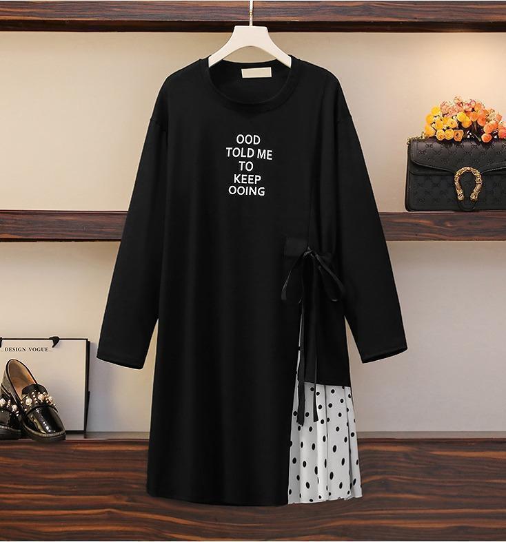 大きいサイズ レディース 秋冬 ドット柄 ワンピース 長袖
