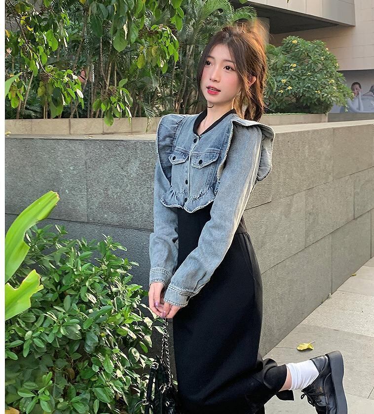 大きいサイズ レディース 秋 冬 ワンピース 異素材 デニム 新品 長袖 春