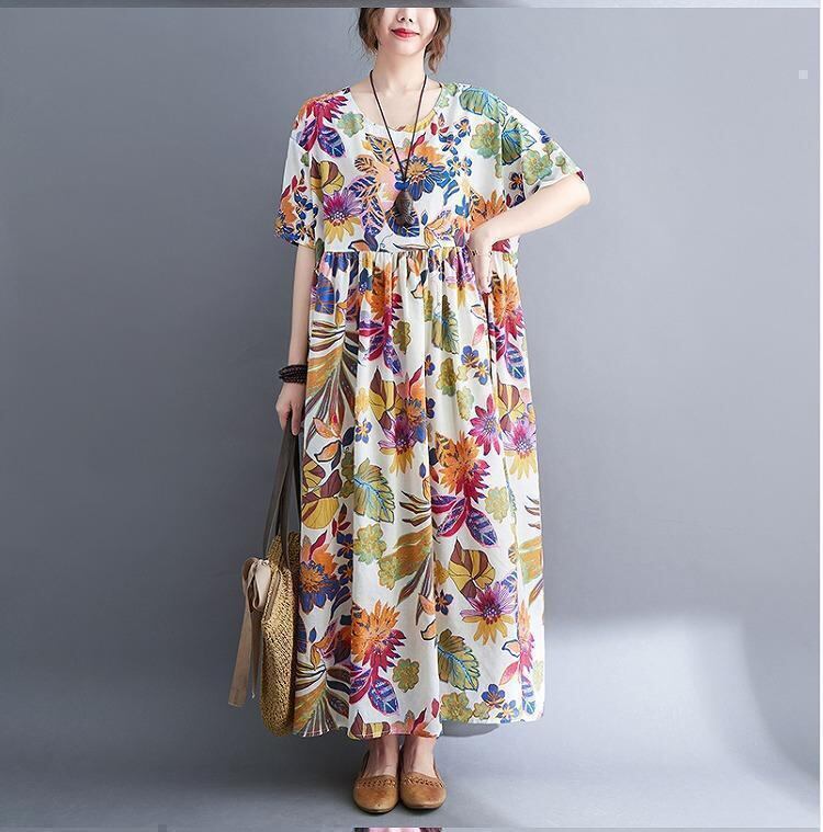 【ラス1】大きいサイズ レディース 春 夏 ロング ワンピース 花柄 新品 半袖