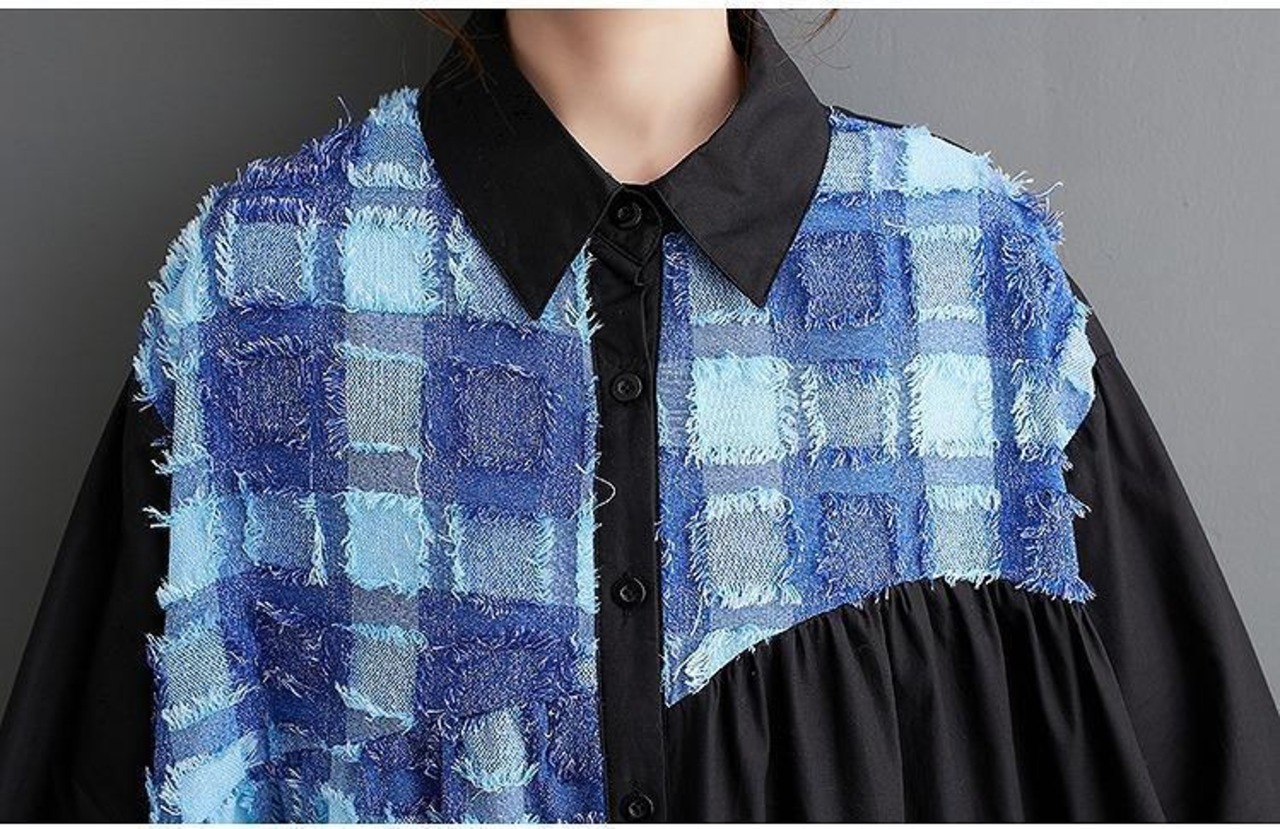 大きいサイズ レディース ロング ワンピース ブルー シャツ 春 秋冬 新品 長袖