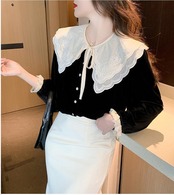 大きいサイズ レディース 秋 冬 トップス 襟付き ビッグ襟 新品 長袖 春
