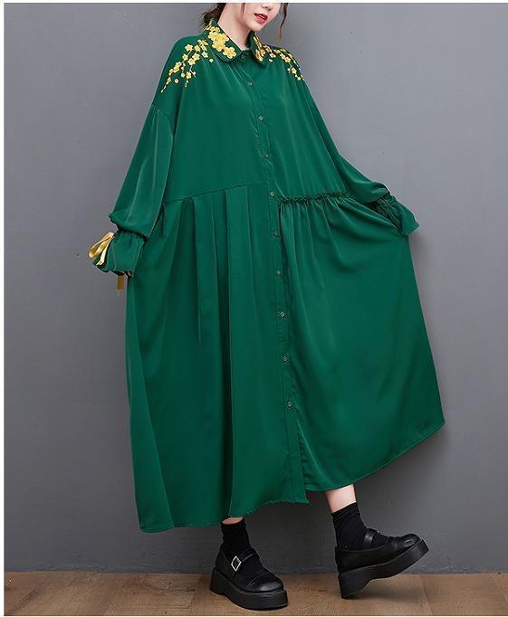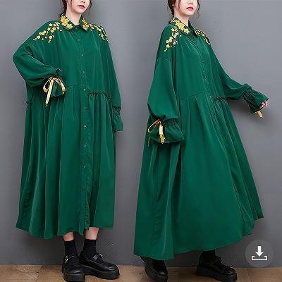 大きいサイズ レディース 秋冬 ロング ワンピース 新品 長袖 グリーン