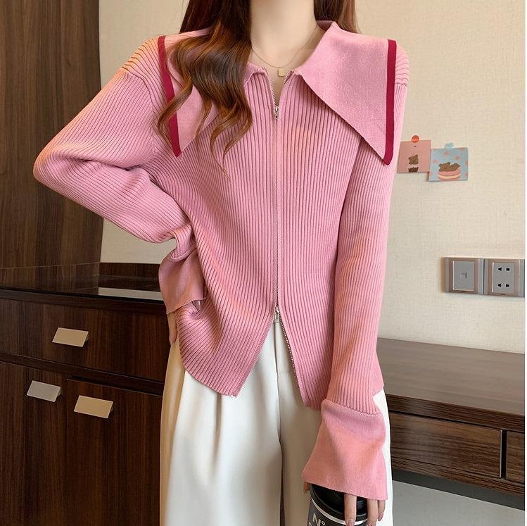 大きいサイズ レディース ニット トップス ジップ 襟付き 春 秋冬 新品 長袖
