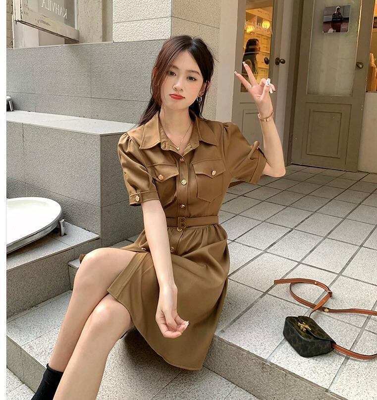 スリットが色っぽい前ボタンワンピース