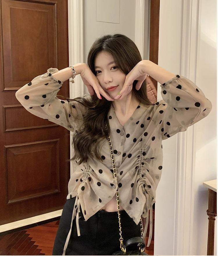 大きいサイズ レディース 秋 冬 トップス シャツ ドット 新品 長袖 春