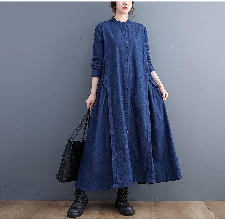 大きいサイズ レディース 秋 冬 ロング ワンピース デニム 新品 長袖 春