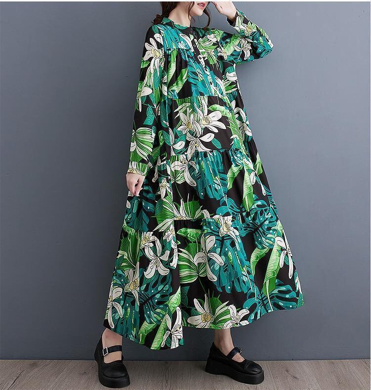 大きいサイズ レディース ロング ワンピース 花柄 春 秋冬 新品 長袖