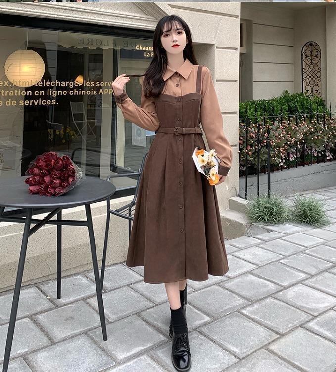 大きいサイズ レディース 秋 冬 重ね着風 ワンピース 新品 長袖 春