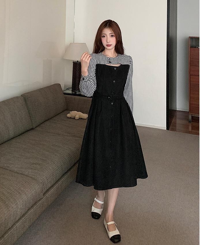 大きいサイズ レディース 秋 冬 ワンピース 重ね着風 新品 長袖 春