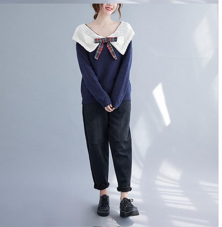 大きいサイズ レディース 秋冬 ニット トップス 襟付き 大きな襟