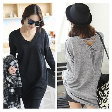 【ラス2黒】大きサイズ レディース トップス バックリボン Vネック 秋冬 長袖