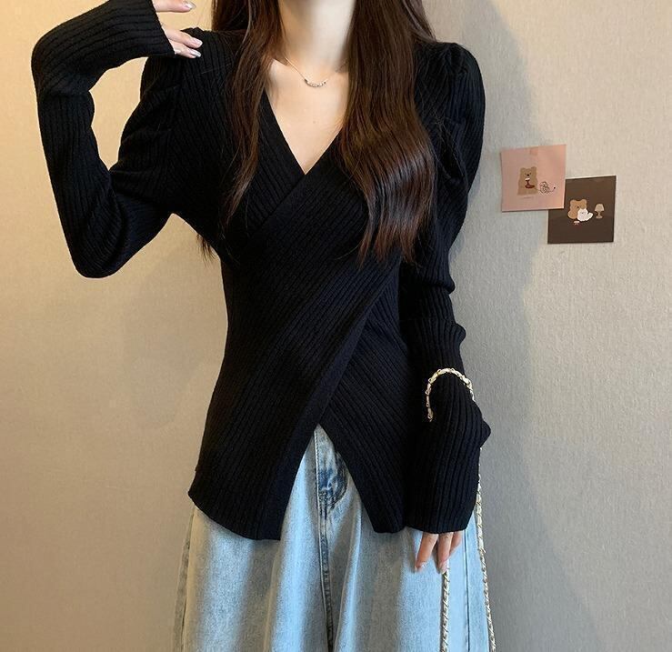 大きいサイズ レディース 秋 冬 ニット トップス カシュクール風 新品 春