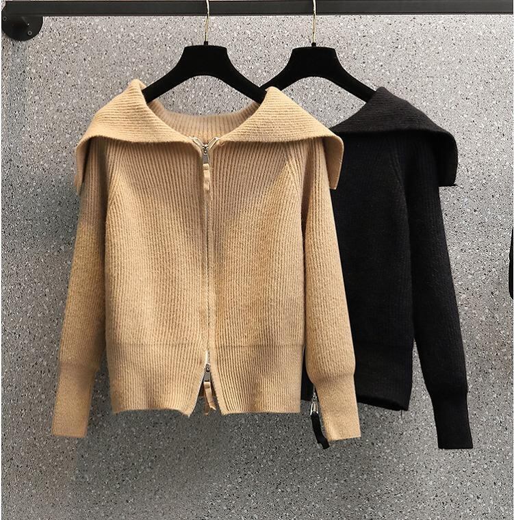 大きいサイズ レディース 秋冬 ニット トップス ジップアップ 長袖