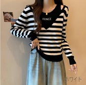 大きいサイズ レディース ニット トップス 重ね着風 春 秋冬 新品 長袖