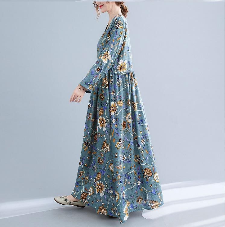 大きいサイズ レディース ロング ワンピース 花柄 春 秋冬 新品 長袖