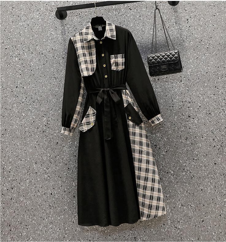 大きいサイズ レディース 秋冬 ワンピース チェック柄 長袖