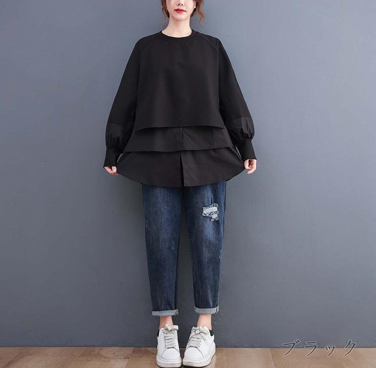 大きいサイズ レディース 秋 冬 トップス 重ね着風 新品 長袖 春