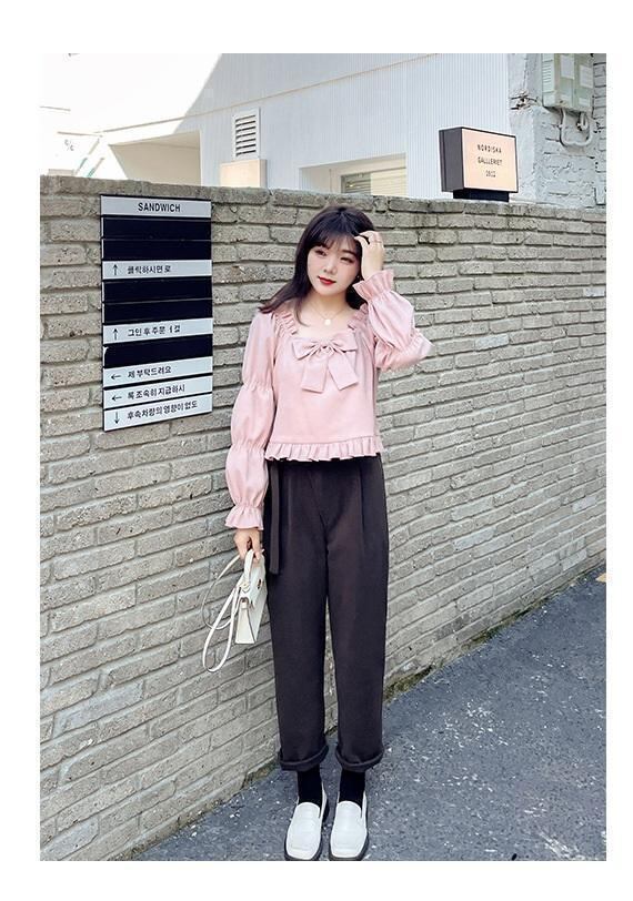 胸元リボン 可愛いフリル ブラウス