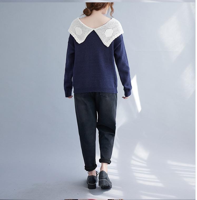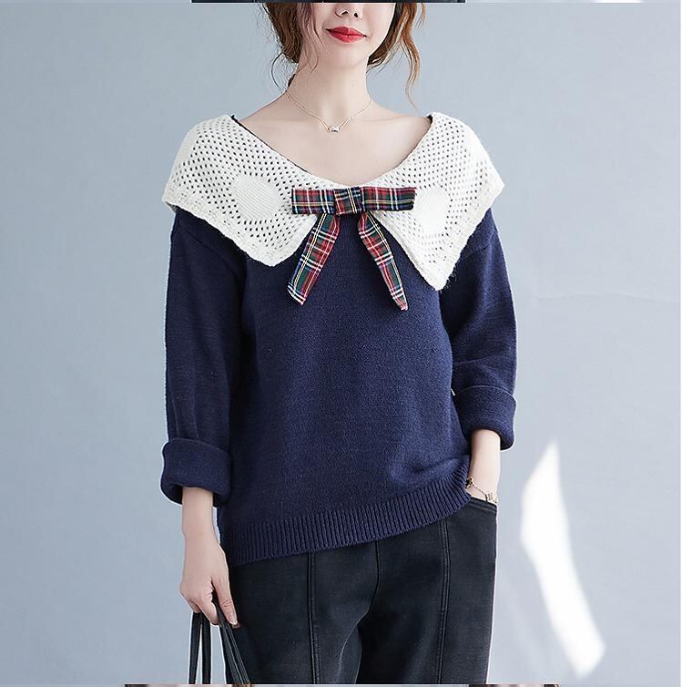 【ラス1】大きいサイズ レディース 秋冬 ニット トップス 襟付き 大きな襟