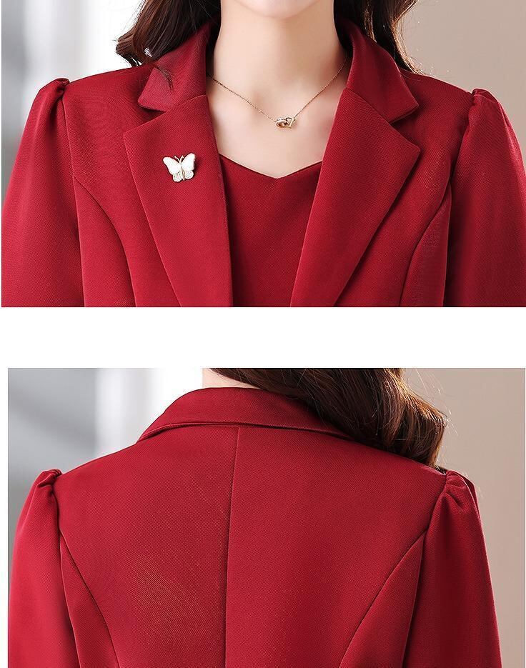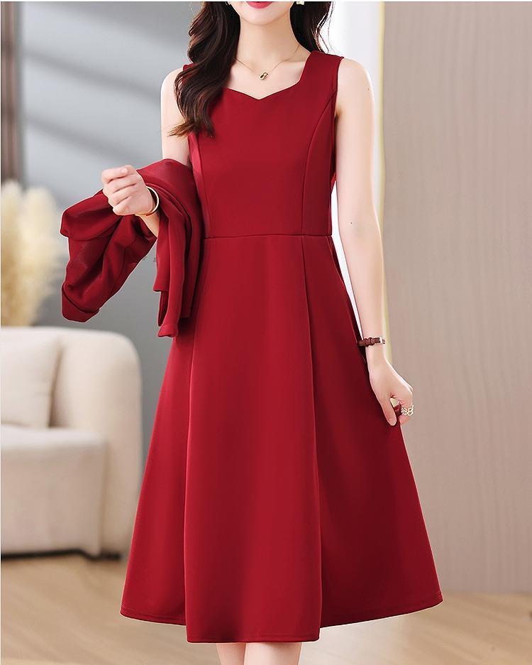 大きいサイズ レディース 2点セットワンピース ジャケット 春 秋冬 新品 長袖 レッド スーツ フォーマル