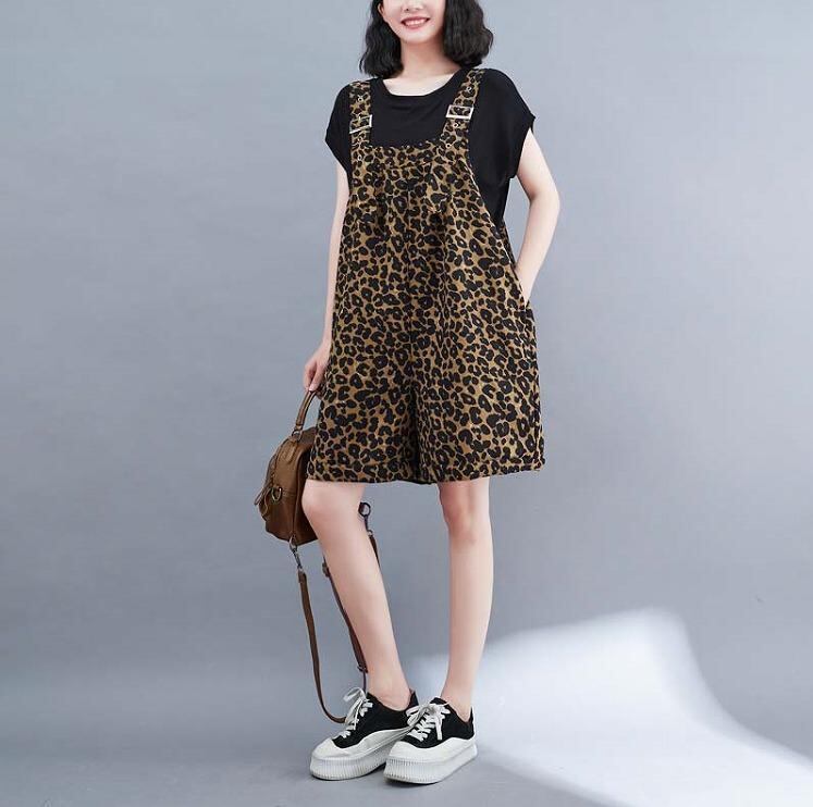 大いサイズ レディース サロペット パンツ ヒョウ柄 新品 ハーフパンツ