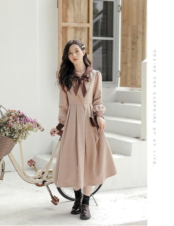 【ラス1】大きいサイズ レディース 秋冬 ワンピース リボン 長袖 春物