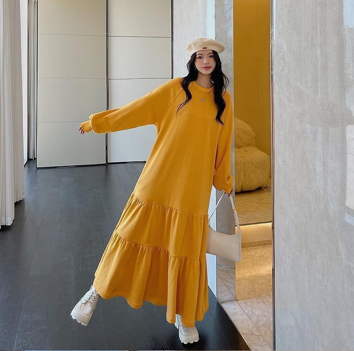 大きいサイズ レディース 秋 冬 ロング ワンピース イエロー 新品 長袖 春