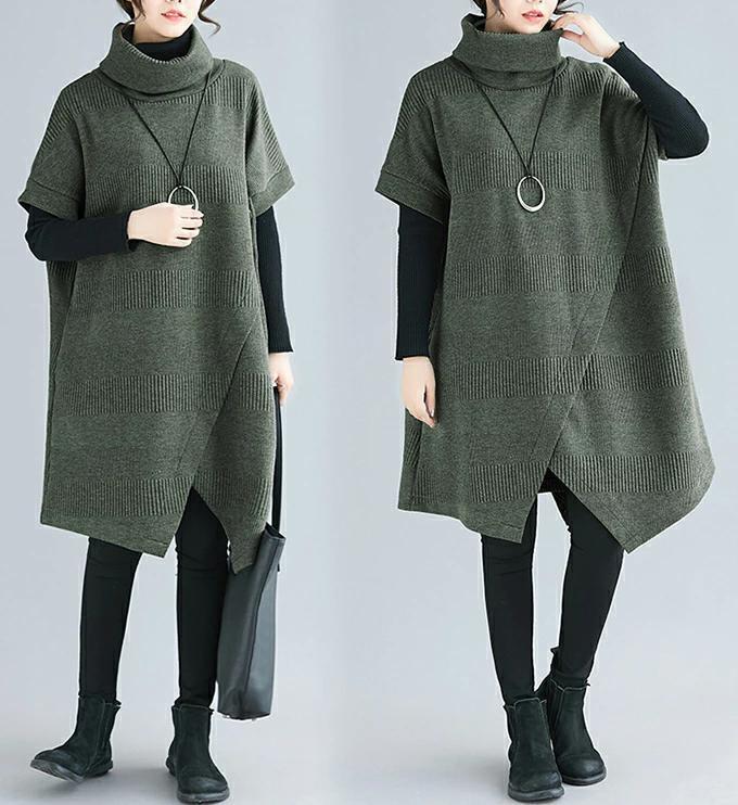 【大きいサイズ レディース】秋冬 タートルネック ワンピース チュニック
