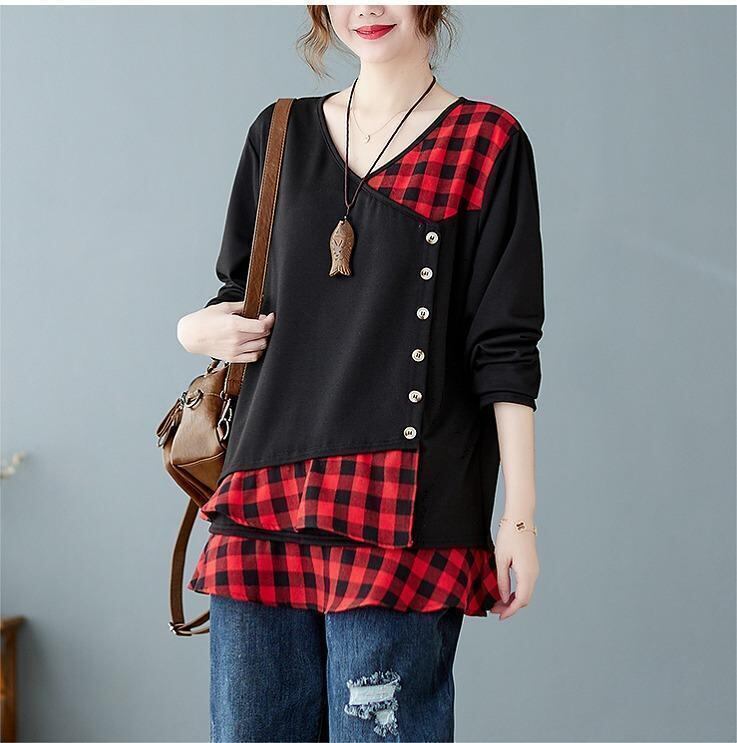 【ラス1 赤】大きいサイズ レディース 秋冬 トップス チェック柄 長袖
