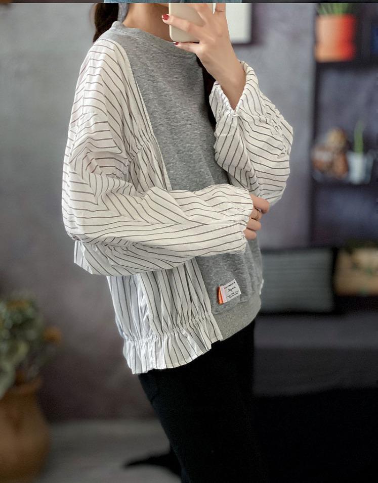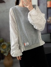 【大きいサイズ レディース】秋冬 春物 トップス ストライプ 長袖