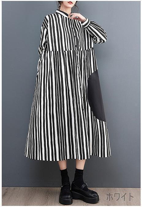 大きいサイズ レディース ロング ワンピース ストライプ 春夏 秋 新品 長袖