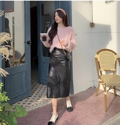 大きいサイズ レディース 秋冬 エコレザー スカート フェイクレザー 異素材