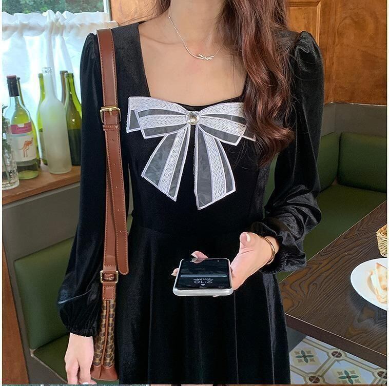 【ラス1】大きいサイズ レディース ワンピース スクエアネック 秋冬