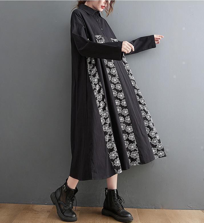大きいサイズ レディース 花柄 ワンピース 長袖 春