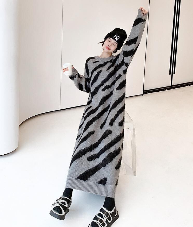 大きいサイズ レディース ロング ワンピース ゼブラ「 春 秋冬 新品 長袖